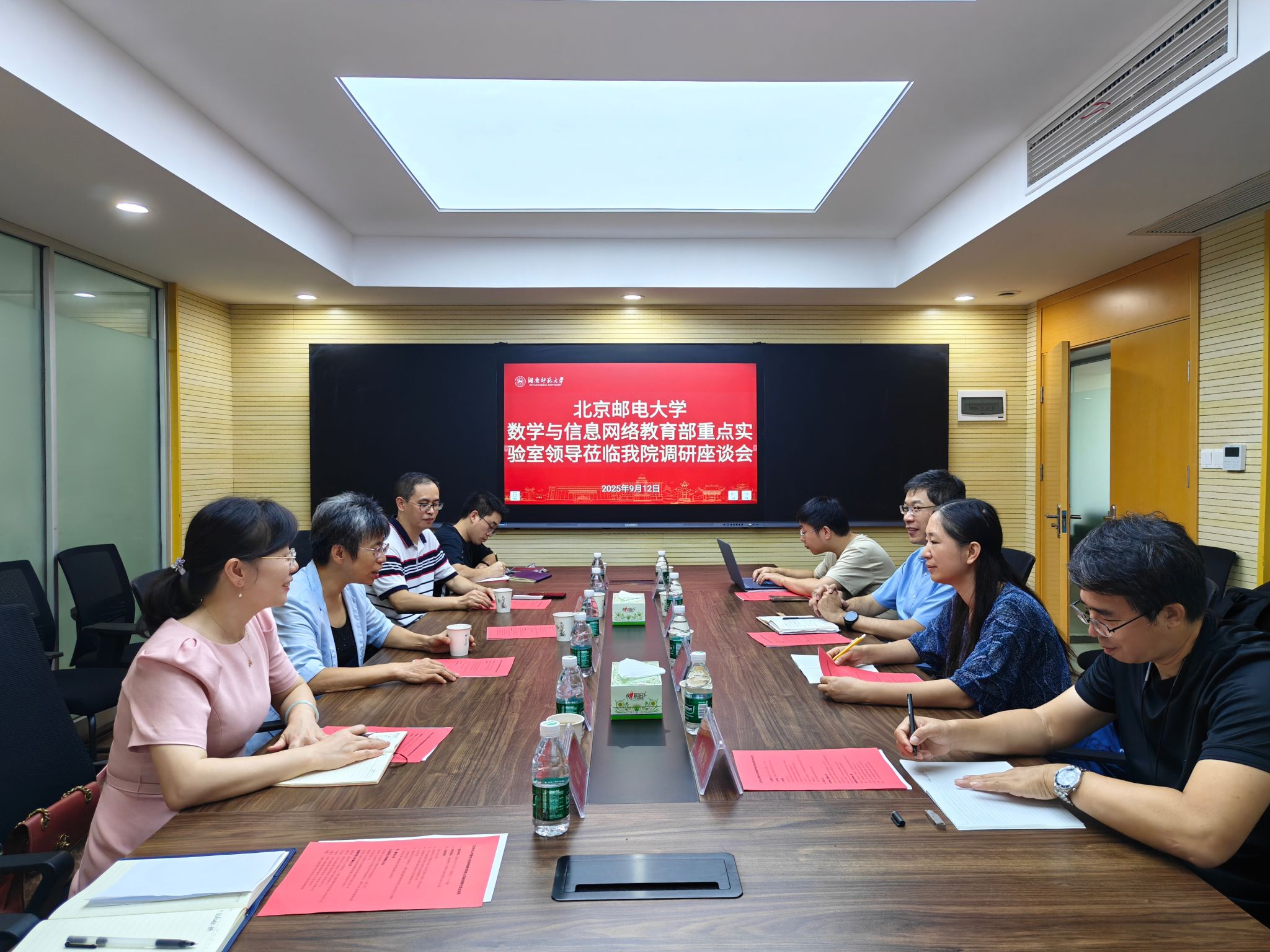刘亚锋介绍了北京邮电大学数学科学学院的发展路径,以及对数学与信息网络教育部重点实验室的支持政策。座谈会上,计算与随机数学教育部重点实验室副主任朱全新和数学与信息网络教育部重点实验室副主任袁健华分别就各自实验室建设情况进行了详细介绍。双方就科研队伍建设、评估验收等方面,展开深入交流探讨。